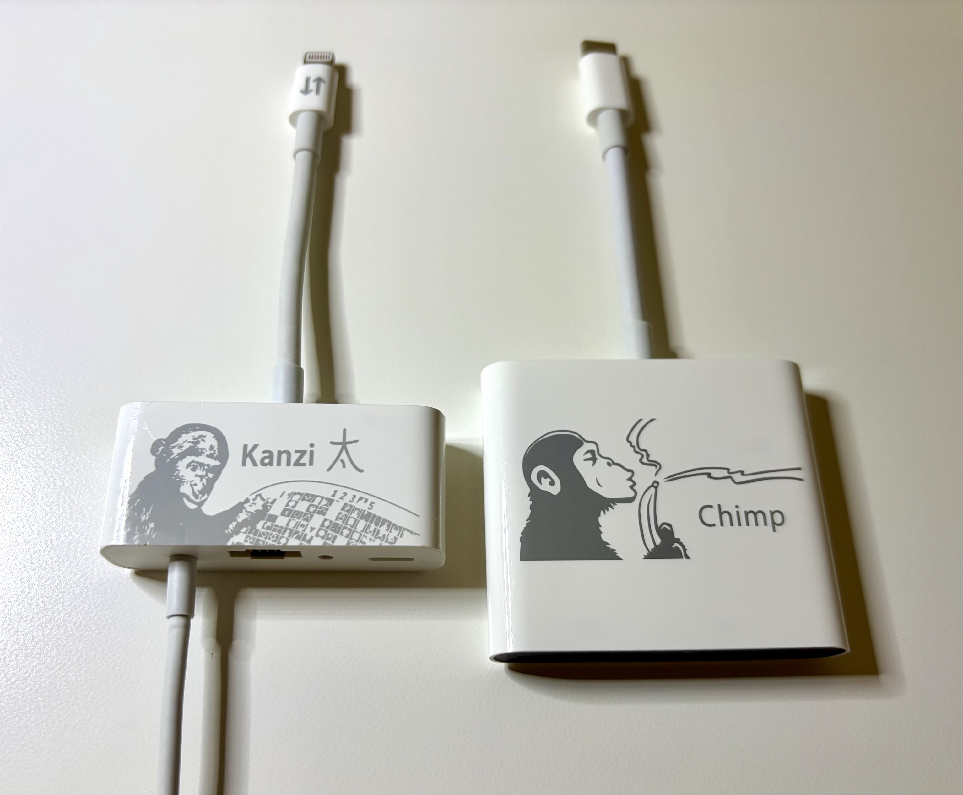 These are used by Apple's retail technicians (and their partners) to read serial numbers from dead devices and etc. This means they are more commonly available on gray/black markets than real Kanzi/Chimp/etc.